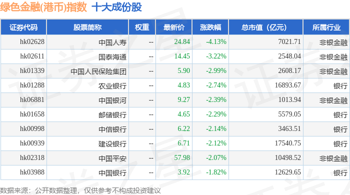绿色金融(港币)(980053)指数十大成份股详情如下: