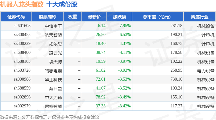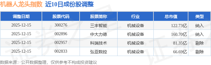 近10日内机器人龙头(980071)指数成份股做了调整,新纳入了2只股票,剔除了2只股票。