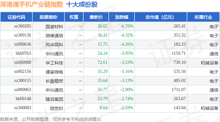 深港通手机产业链(983009)指数十大成份股详情如下: