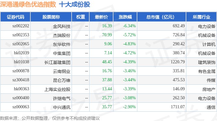 深港通绿色优选(983011)指数十大成份股详情如下: