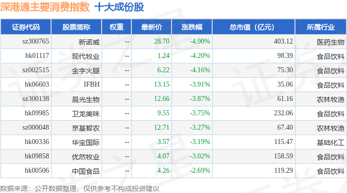资金流向方面,深港通主要消费(983021)指数成份股当日主力资金净流出合计3.16亿元,游资资金净流出合计9054.07万元,散户资金净流入合计4.06亿元。成份股资金流向详情见下表: