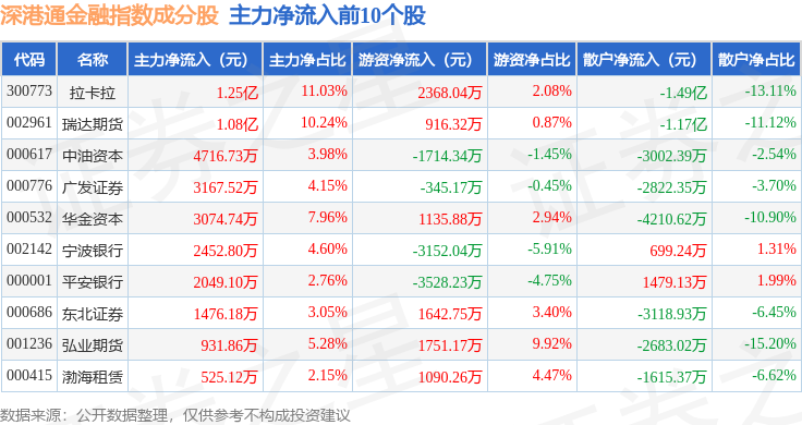 资金流向方面,深港通金融(983025)指数成份股当日主力资金净流出合计3.5亿元,游资资金净流入合计2.7亿元,散户资金净流入合计8001.24万元。成份股资金流向详情见下表: