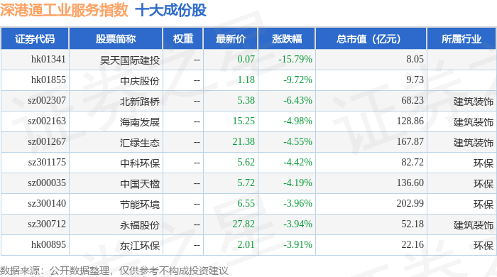 深港通工业服务(983055)指数十大成份股详情如下: