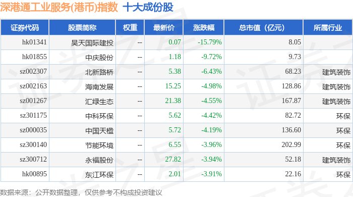 深港通工业服务(港币)(983056)指数十大成份股详情如下: