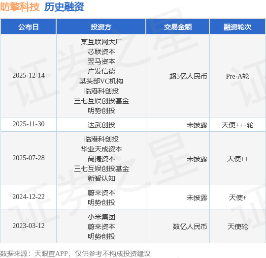 证券之星消息,根据天眼查APP于12月14日公布的信息整理,上海昉擎科技有限公司Pre-A轮融资,融资额超5亿人民币,参与投资的机构包括某互联网大厂,芯联资本,翌马资本,广发信德,某头部VC机构,临港科创投,三七互娱创投基金,明势创投。