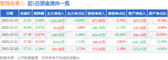 证券之星消息,截至2025年12月16日收盘,智翔金泰(688443)报收于25.85元,下跌3.69%,换手率2.48%,成交量2.89万手,成交额7525.99万元。