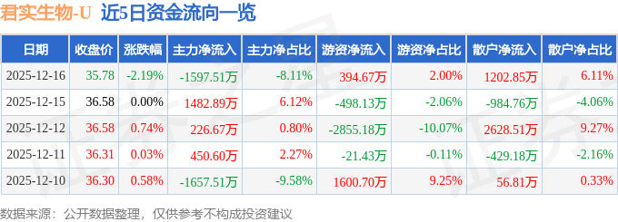 证券之星消息,截至2025年12月16日收盘,君实生物(688180)报收于35.78元,下跌2.19%,换手率0.71%,成交量5.47万手,成交额1.97亿元。