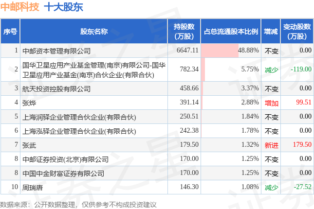 根据中邮科技2025年三季报公布的十大股东详情如下: