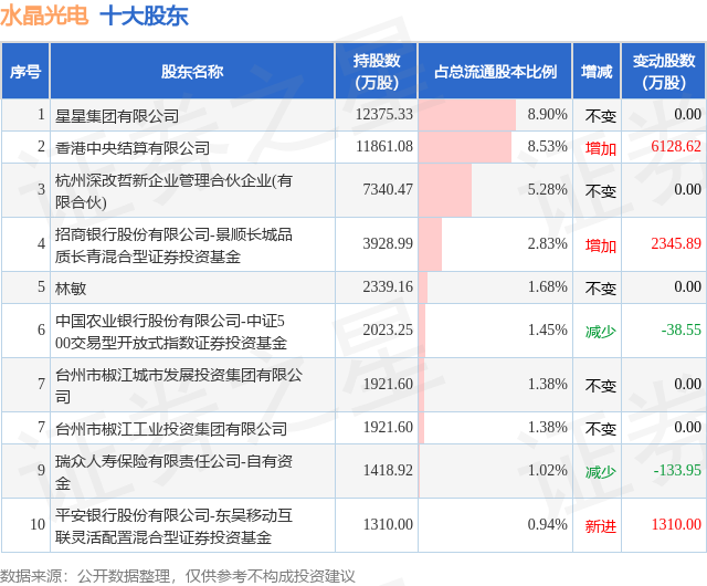 根据水晶光电2025年三季报公布的十大股东详情如下: