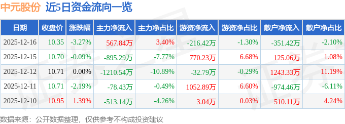 证券之星消息,截至2025年12月16日收盘,中元股份(300018)报收于10.35元,下跌3.27%,换手率3.56%,成交量16.0万手,成交额1.67亿元。