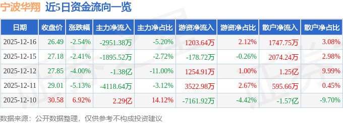 证券之星消息,截至2025年12月16日收盘,宁波华翔(002048)报收于26.49元,下跌2.54%,换手率3.02%,成交量21.45万手,成交额5.67亿元。