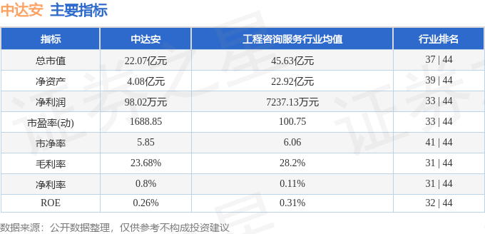 中达安2025年三季报显示,前三季度公司主营收入4.69亿元,同比下降5.03%;归母净利润98.02万元,同比下降56.3%;扣非净利润90.74万元,同比下降57.87%;其中2025年第三季度,公司单季度主营收入1.67亿元,同比上升1.91%;单季度归母净利润-86.76万元,同比上升63.48%;单季度扣非净利润-52.32万元,同比上升72.33%;负债率70.44%,投资收益73.43万元,财务费用1390.45万元,毛利率23.68%。中达安(300635)主营业务:以工程监理为主的建设工程项目管理咨询服务业务,公司工程监理业务以通信监理、电力监理、水利监理和土建监理为主。