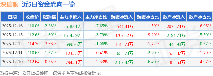 证券之星消息,截至2025年12月16日收盘,深信服(300454)报收于110.06元,下跌2.28%,换手率1.12%,成交量3.1万手,成交额3.42亿元。