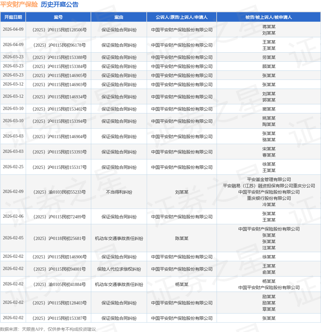 证券之星消息,根据天眼查APP显示,近日公布了一则中国平安财产保险股份有限公司作为被告/被上诉人的开庭公告,详细内容如下: