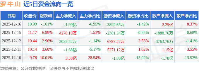 12月16日的资金流向数据方面,主力资金净流出1.9亿元,占总成交额6.95%,游资资金净流出3892.65万元,占总成交额1.42%,散户资金净流入2.29亿元,占总成交额8.37%。