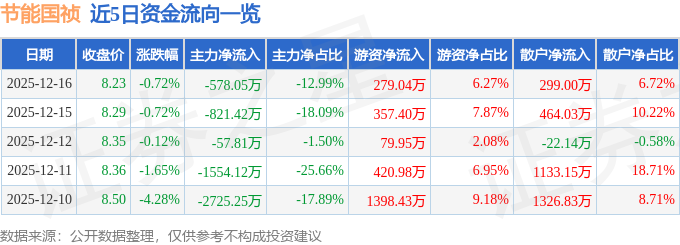 证券之星消息,截至2025年12月16日收盘,节能国祯(300388)报收于8.23元,下跌0.72%,换手率0.8%,成交量5.42万手,成交额4451.03万元。