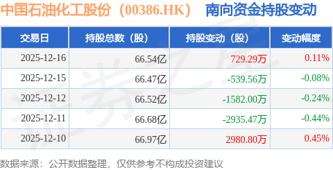 证券之星消息,12月16日南向资金增持729.29万股中国石油化工股份(00386.HK)。近5个交易日中,获南向资金减持的有3天,累计净减持1346.93万股。近20个交易日中,获南向资金增持的有13天,累计净增持1.29亿股。截至目前,南向资金持有中国石油化工股份(00386.HK)66.54亿股,占公司已发行普通股的27.78%。