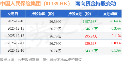 证券之星消息,12月16日南向资金减持1697.68万股中国人民保险集团(01339.HK)。近5个交易日中,获南向资金减持的有3天,累计净减持2451.75万股。近20个交易日中,获南向资金减持的有8天,累计净减持89.79万股。截至目前,南向资金持有中国人民保险集团(01339.HK)26.53亿股,占公司已发行普通股的30.39%。
