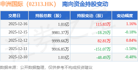证券之星消息,12月16日南向资金增持115.83万股申洲国际(02313.HK)。近5个交易日中,获南向资金减持的有3天,累计净减持19.21万股。近20个交易日中,获南向资金增持的有12天,累计净增持112.38万股。截至目前,南向资金持有申洲国际(02313.HK)1.01亿股,占公司已发行普通股的6.71%。