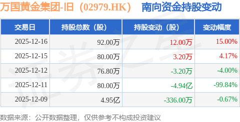 证券之星消息,12月16日南向资金增持12.0万股万国黄金集团-旧(02979.HK)。近5个交易日中,获南向资金减持的有3天,累计净减持4.98亿股。截至目前,南向资金持有万国黄金集团-旧(02979.HK)92.0万股,占公司已发行普通股的0.01%。