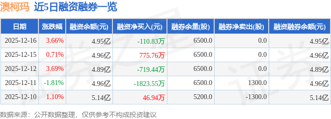 澳柯玛融资融券信息显示,融资方面,当日融资买入5580.3万元,融资偿还5691.13万元,融资净偿还110.83万元。融券方面,融券卖出0.0股,融券偿还0.0股,融券余量6500.0股,融券余额5.71万元。融资融券余额4.95亿元。