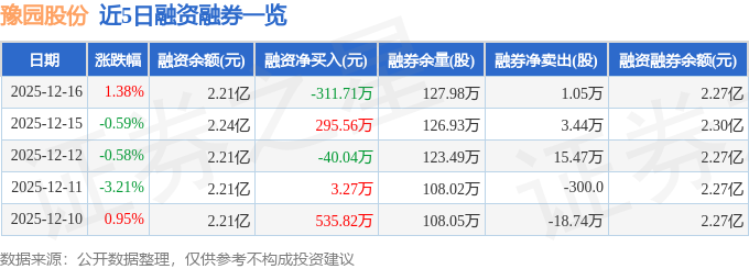 豫园股份融资融券信息显示,融资方面,当日融资买入170.53万元,融资偿还482.24万元,融资净偿还311.71万元。融券方面,融券卖出2.46万股,融券偿还1.41万股,融券余量127.98万股,融券余额657.82万元。融资融券余额2.27亿元。