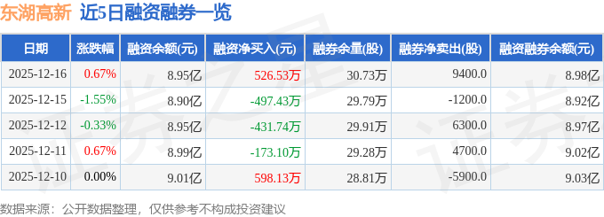 证券之星消息,截至2025年12月16日收盘,东湖高新(600133)报收于8.96元,上涨0.67%,换手率1.58%,成交量16.84万手,成交额1.51亿元。