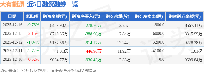 证券之星消息,截至2025年12月16日收盘,大有能源(600403)报收于6.84元,下跌9.76%,换手率2.8%,成交量66.95万手,成交额4.69亿元。