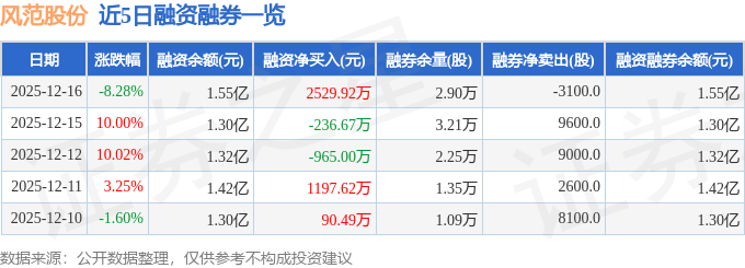 证券之星消息,截至2025年12月16日收盘,风范股份(601700)报收于5.65元,下跌8.28%,换手率14.82%,成交量169.34万手,成交额9.87亿元。