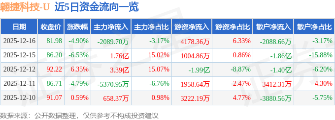 证券之星消息,截至2025年12月16日收盘,翱捷科技(688220)报收于81.98元,下跌4.9%,换手率2.2%,成交量7.93万手,成交额6.6亿元。