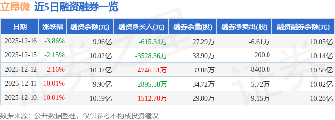 立昂微融资融券信息显示,融资方面,当日融资买入1.27亿元,融资偿还1.33亿元,融资净偿还615.34万元。融券方面,融券卖出100.0股,融券偿还6.62万股,融券余量27.29万股,融券余额957.33万元。融资融券余额10.05亿元。