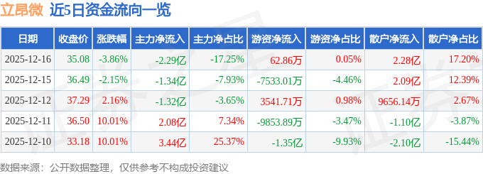 证券之星消息,截至2025年12月16日收盘,立昂微(605358)报收于35.08元,下跌3.86%,换手率5.58%,成交量37.48万手,成交额13.27亿元。