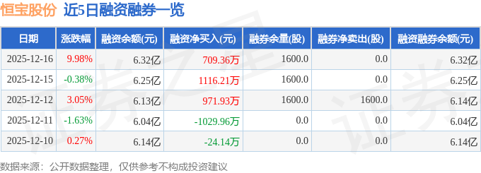 证券之星消息,截至2025年12月16日收盘,恒宝股份(002104)报收于20.38元,上涨9.98%,涨停,换手率19.25%,成交量115.41万手,成交额22.64亿元。