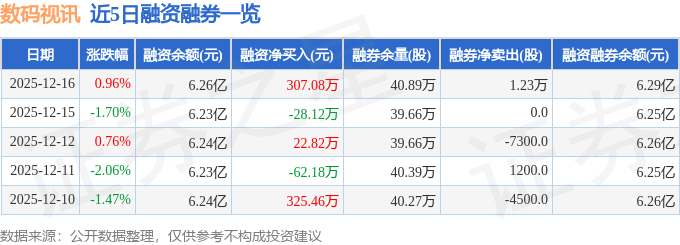 数码视讯融资融券信息显示,融资方面,当日融资买入1221.03万元,融资偿还913.95万元,融资净买入307.08万元。融券方面,融券卖出1.28万股,融券偿还500.0股,融券余量40.89万股,融券余额214.26万元。融资融券余额6.29亿元。