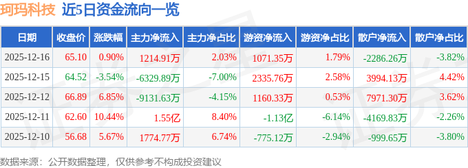 证券之星消息,截至2025年12月16日收盘,珂玛科技(301611)报收于65.1元,上涨0.9%,换手率6.3%,成交量9.24万手,成交额5.98亿元。