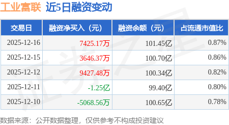 证券之星消息,12月16日,工业富联(601138)融资买入8.73亿元,融资偿还7.99亿元,融资净买入7425.17万元,融资余额101.45亿元,当日融资净买入排名第36,近3个交易日已连续净买入累计2.05亿元,近20个交易日中有13个交易日出现融资净买入。