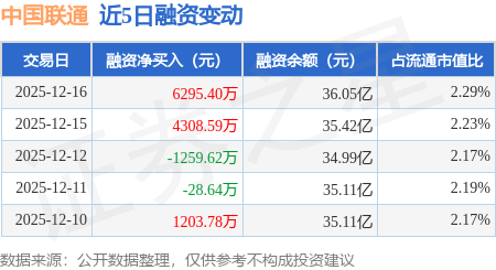 证券之星消息,12月16日,中国联通(600050)融资买入1.57亿元,融资偿还9435.24万元,融资净买入6295.4万元,融资余额36.05亿元,当日融资净买入排名第46。