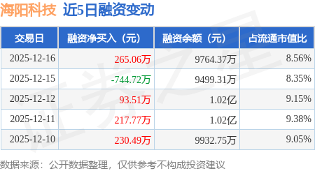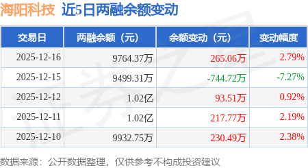 证券之星消息,12月16日,海阳科技(603382)融资买入836.27万元,融资偿还571.2万元,融资净买入265.06万元,融资余额9764.37万元,近20个交易日中有11个交易日出现融资净买入。