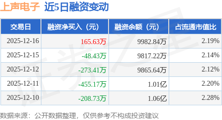 证券之星消息,12月16日,上声电子(688533)融资买入428.21万元,融资偿还262.58万元,融资净买入165.63万元,融资余额9982.84万元。