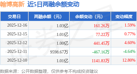 证券之星消息,12月16日,翰博高新(301321)融资买入850.22万元,融资偿还688.96万元,融资净买入161.26万元,融资余额1.03亿元,近3个交易日已连续净买入累计679.93万元,近20个交易日中有12个交易日出现融资净买入。