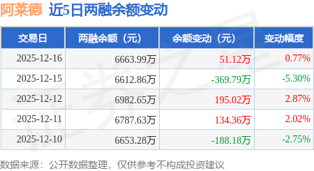 证券之星消息,12月16日,阿莱德(301419)融资买入283.4万元,融资偿还232.27万元,融资净买入51.12万元,融资余额6663.99万元。