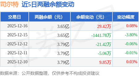 证券之星消息,12月16日,司尔特(002538)融资买入632.24万元,融资偿还602.82万元,融资净买入29.42万元,融资余额3.65亿元,近20个交易日中有14个交易日出现融资净买入。