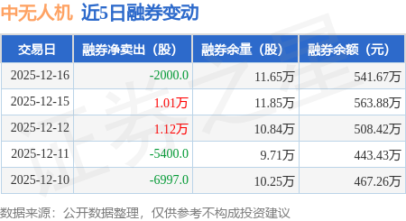 证券之星消息,12月16日,中无人机(688297)融资买入3333.47万元,融资偿还3311.67万元,融资净买入21.8万元,融资余额4.92亿元。