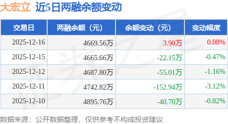 证券之星消息,12月16日,大宏立(300865)融资买入150.34万元,融资偿还146.44万元,融资净买入3.9万元,融资余额4669.56万元。