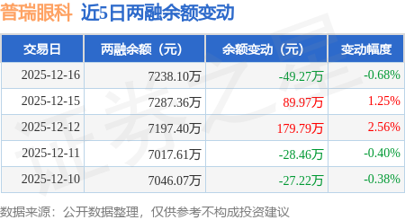 证券之星消息,12月16日,普瑞眼科(301239)融资买入242.2万元,融资偿还285.19万元,融资净卖出42.99万元,融资余额7216.48万元。