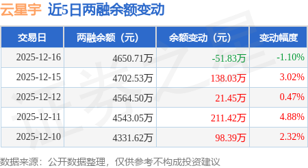 证券之星消息,12月16日,云星宇(920806)融资买入1432.96万元,融资偿还1484.79万元,融资净卖出51.83万元,融资余额4650.71万元。
