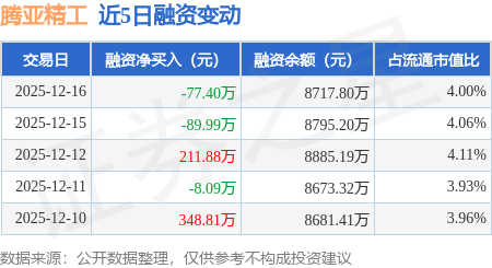 证券之星消息,12月16日,腾亚精工(301125)融资买入776.21万元,融资偿还853.61万元,融资净卖出77.4万元,融资余额8717.8万元。