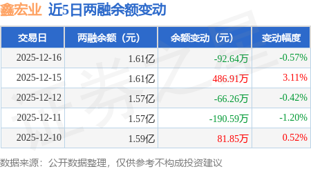 证券之星消息,12月16日,鑫宏业(301310)融资买入495.9万元,融资偿还588.55万元,融资净卖出92.64万元,融资余额1.61亿元,近20个交易日中有11个交易日出现融资净买入。