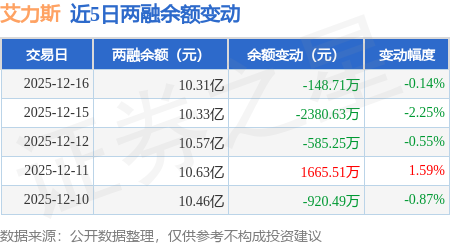 证券之星消息,12月16日,艾力斯(688578)融资买入1528.36万元,融资偿还1737.06万元,融资净卖出208.71万元,融资余额10.26亿元。