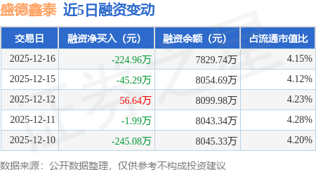 证券之星消息,12月16日,盛德鑫泰(300881)融资买入368.0万元,融资偿还592.96万元,融资净卖出224.96万元,融资余额7829.74万元。